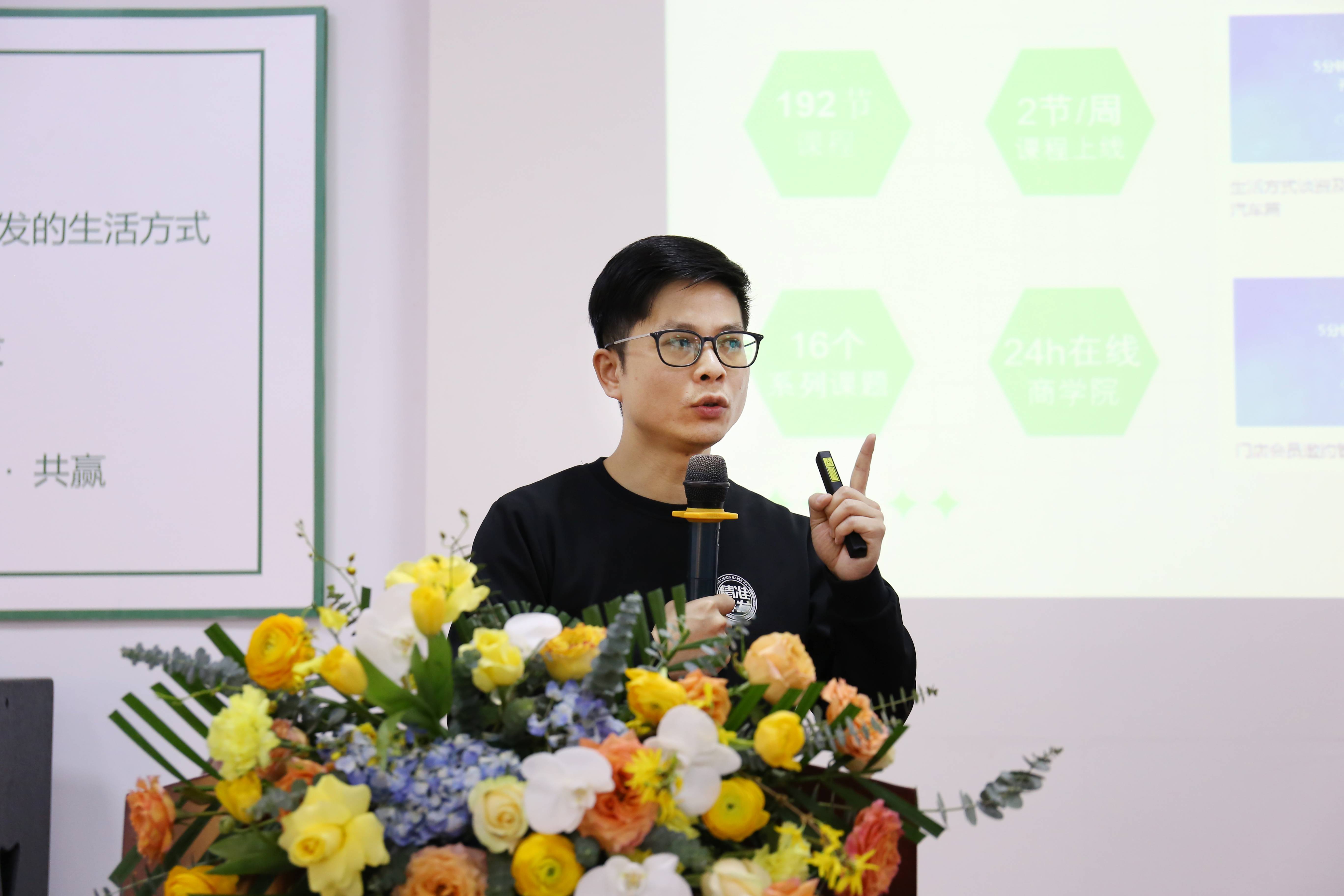 源生堂商學院執行院長農文龍,向參會合作伙伴分享了商學院最新研發的新課程、新工具、新計劃,幫助門店解決新人培訓、門店運營、客戶服務、產品搭配、專業提升等難題,以學促商,全線賦能,輕松復制直營成功經驗,讓經營變得更簡單。