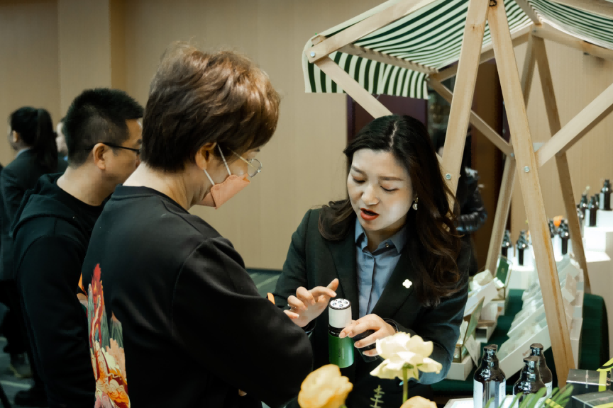 源生堂市場部總監甘斌分享了最新的市場變化和頭部養護趨勢,以及2023年品牌營銷計劃,并隆重介紹最近上市的重磅新品,包括源生堂舒緩精華乳、源生堂舒享靜安精油和舒緩悅活精油等,以植物精萃、溫和親膚、使用便捷的產品特點,引起大家的濃厚興趣,紛紛加入體驗。