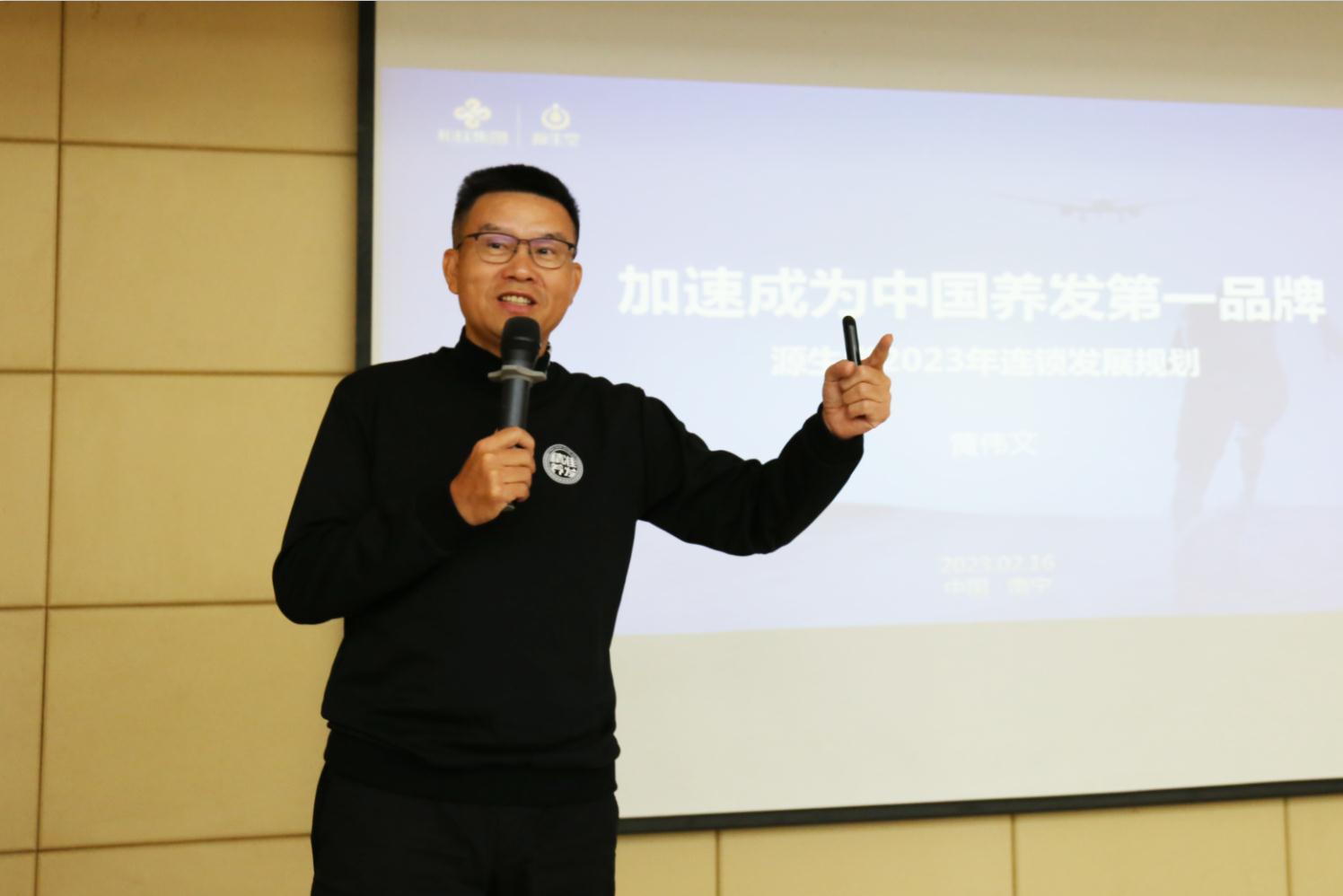源生堂品牌創始人黃偉文發表主題演講,源生堂砥礪前行19年,從第一家直營門店開業,到目前300家門店遍布全國,成長為行業標桿品牌,行業影響力持續上升,感謝廣大代理商、加盟商伙伴多年來為源生堂發展作出的努力和貢獻。2023年,源生堂緊抓政策紅利和市場趨勢,圍繞“精準養發+便捷養發”雙引擎驅動模式,著力做好產品技術、門店形象、客戶體驗、線上營銷、運營標準、教育培訓、品牌勢能等方面的升級,為合作伙伴持續賦能,加速成為中國養發第一品牌。