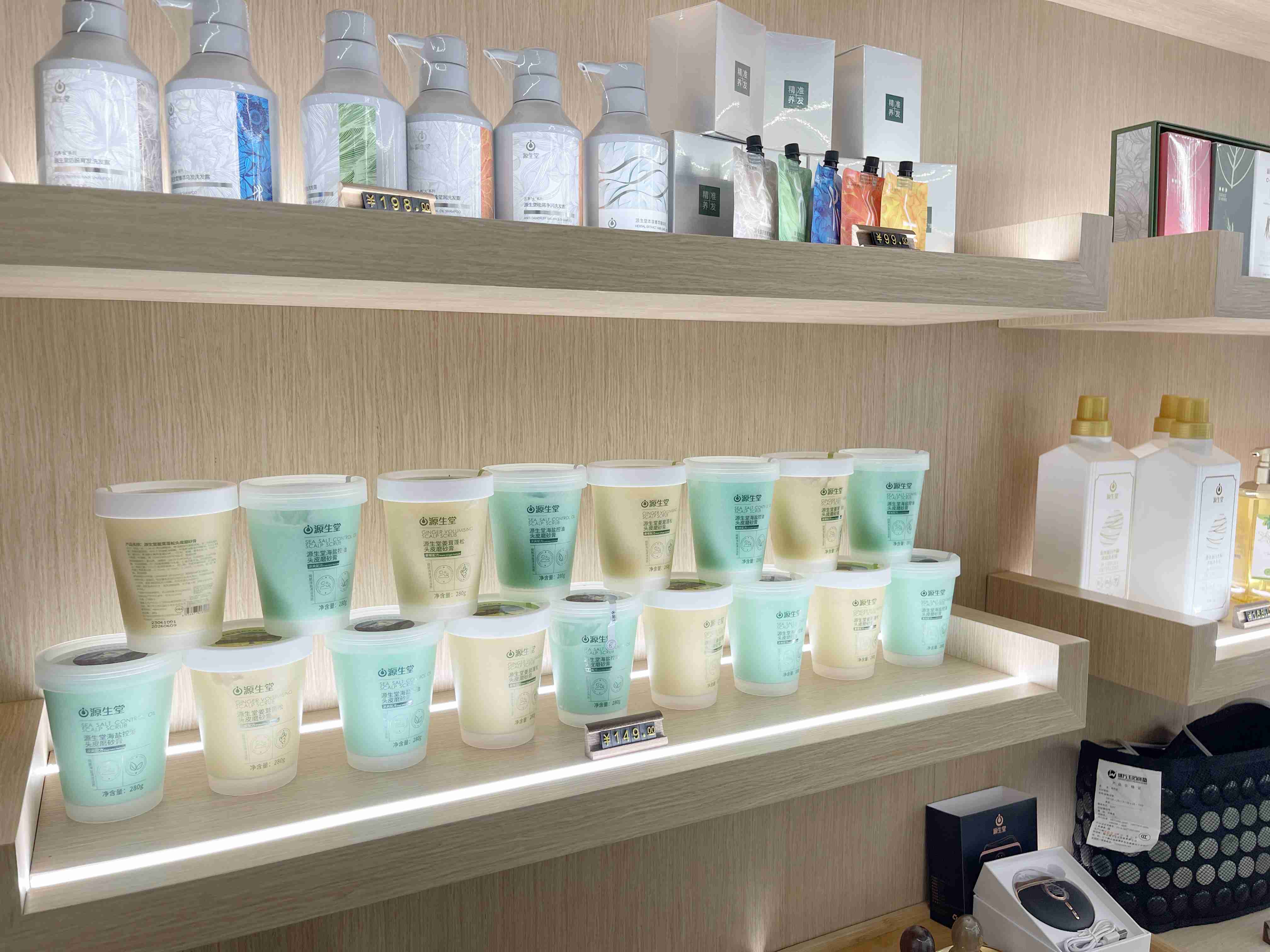 源生堂產品展示區,包裝時尚精致的產品,引進了大家的濃厚興趣。產品與中國科學院過程工程研究所、廣西中醫藥大學聯合研發,聚焦脫發、白發、頭油、頭屑等日常頭皮頭發困擾,擁有國家專利和國妝特證,經過上萬次實驗后才會使用到消費者頭上,植物本草成分,對頭皮非常友好,得到全國50萬門店客戶的親測和推薦。